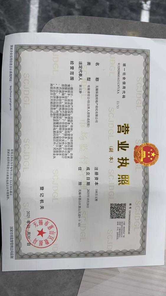 无锡保盈房地产经纪有限公司统一社会信用代码:91320206MAG1C971XA法定代表人:郭文静 成立日期:2025-10-20备案状态:有效备案证书号:锡惠建经备2025(004)号(临时)备案有效期:2025-11-25至2026-11-25发证机关:无锡市惠山区住房和城乡建设局发证日期:2025-11-25 |